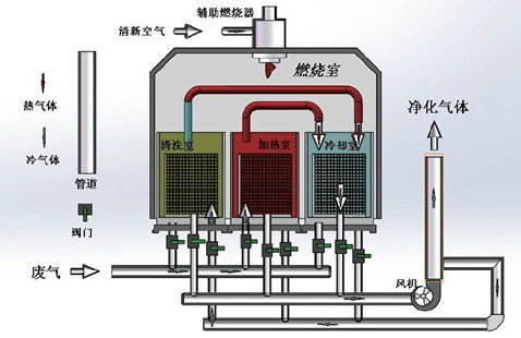 得到最大限度的回收,熱回收率大于95%,處理VOC時不用或使用很少的燃料。若處理低濃度廢氣,可選裝濃縮裝置,以降低燃燒消耗。